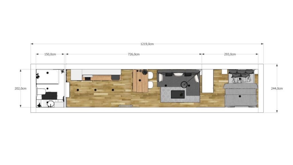 In einer vorhandenen Grünfläche werden 14 Tiny Houses harmonisch in die Umgebung integriert, um mehr Platz für Individualität und Naturerlebnis zu schaffen. Jede Einheit ist so positioniert, dass sie sowohl Privatsphäre als auch Gemeinschaftsgefühl fördert, und zugleich den natürlichen Charme der Ranch bewahrt.
